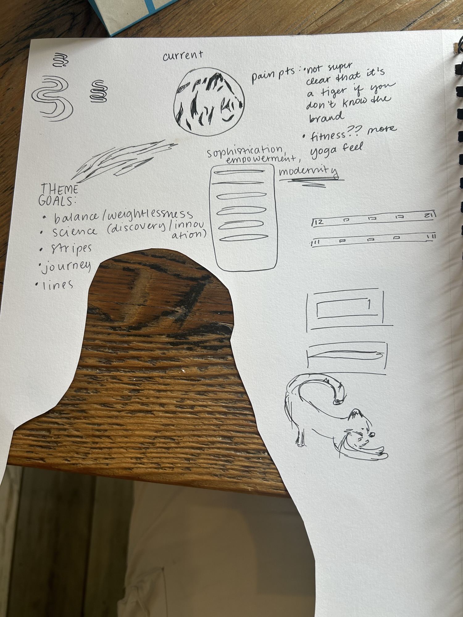 Tyger Fitness is a brand that sells yoga mats and other equpment that better help you measure the intensity of your workout. Their previous logo was a silhouette of a tiger, which felt a little bit obvious. Using the client’s preferred color palette, I used neutral and natural visuals to give the peaceful impression of the company and targeted trends of their target demographic of women aged 18-24. The logo itself resembles tiger stripes, as well as a stretching figure.